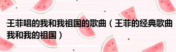 王菲唱的我和我祖国的歌曲(王菲的经典歌曲我和我的祖国)