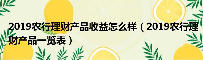 导读 大家好,今天小六子来为大家解答以下的问题,关于2019农行理财产品收益怎么样,2019农行理财产品一览表这个很多人还不知道,现在让我们一起