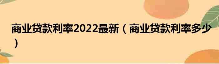 导读 大家好,今天小六子来为大家解答以下的问题,关于商业贷款利率2022最新,商业贷款利率多少这个很多人还不知道,现在让我们一起来看看吧!1、