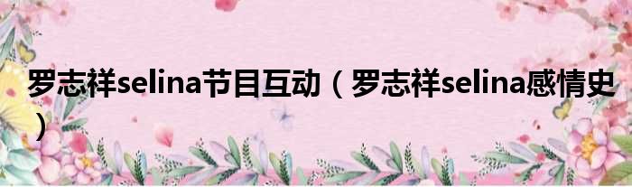 大家好,今天小六子来为大家解答以下的问题,关于罗志祥selina节目互动,罗志祥selina感情史这个很多人还不知道,现在让我们一起来看看吧!