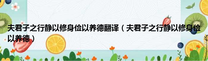 夫君子之行静以修身俭以养德翻译(夫君子之行静以修身俭以养德)