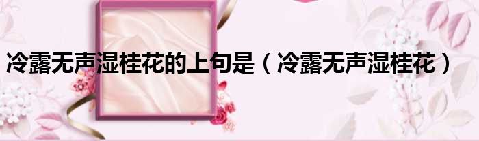 大家好,今天小六子来为大家解答以下的问题,关于冷露无声湿桂花的上句是,冷露无声湿桂花这个很多人还不知道,现在让我们一起来看看吧!