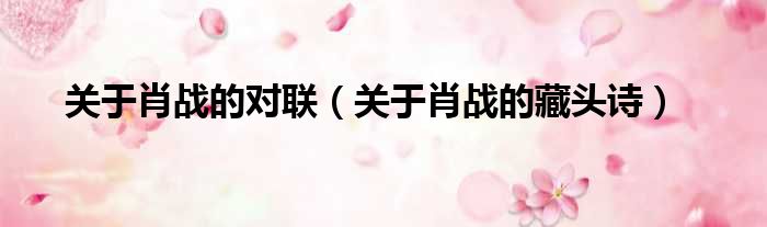 大家好,今天小六子来为大家解答以下的问题,关于关于肖战的对联,关于肖战的藏头诗这个很多人还不知道,现在让我们一起来看看吧!