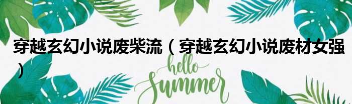 导读 大家好,今天小六子来为大家解答以下的问题,关于穿越玄幻小说废柴流,穿越玄幻小说废材女强这个很多人还不知道,现在让我们一起来看看吧!1