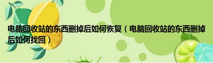 电脑回收站的东西删掉后如何恢复(电脑回收站的东西删掉后如何找回)