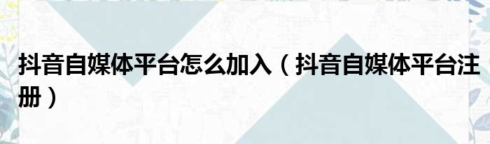 抖音自媒体平台怎么加入(抖音自媒体平台注册)