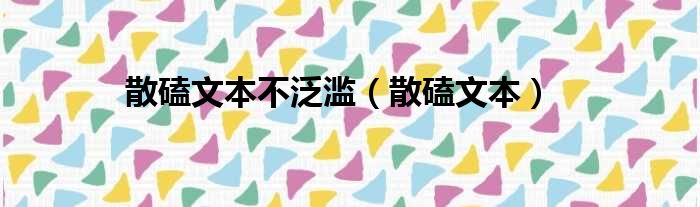大家好,今天小六子来为大家解答以下的问题,关于散磕文本不泛滥,散磕文本这个很多人还不知道,现在让我们一起来看看吧!