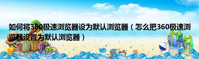 如何将360极速浏览器设为默认浏览器(怎么把360极速浏览器设置为默认浏览器)