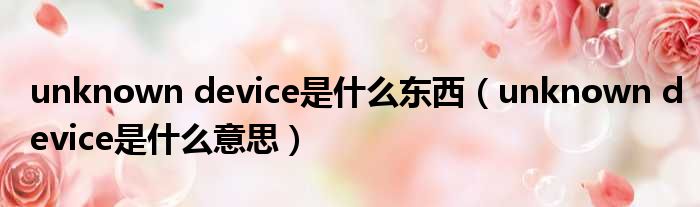导读 大家好,今天小六子来为大家解答以下的问题,关于unknown device是什么东西,unknown device是什么意思这个很多人还不知道,现在让我们一