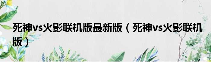 死神vs火影联机版最新版(死神vs火影联机版)