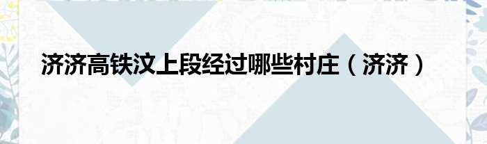 导读 大家好,今天小六子来为大家解答以下的问题,关于济济高铁汶上段经过哪些村庄,济济这个很多人还不知道,现在让我们一起来看看吧!1、济济一