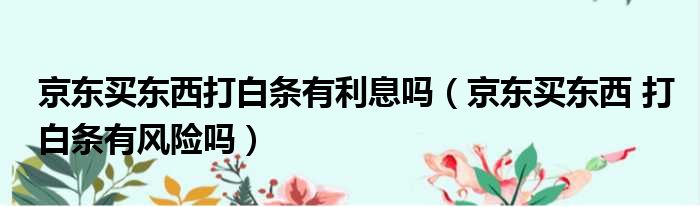京东买东西打白条有利息吗(京东买东西 打白条有风险吗)