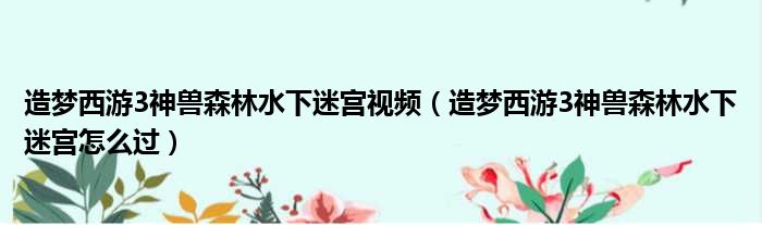 造梦西游3神兽森林水下迷宫视频(造梦西游3神兽森林水下迷宫怎么过)