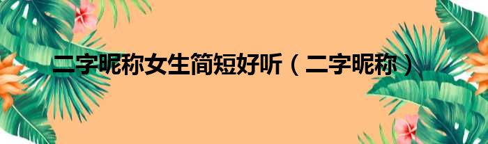 大家好,今天小六子来为大家解答以下的问题,关于二字昵称女生简短好听,二字昵称这个很多人还不知道,现在让我们一起来看看吧!