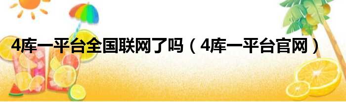 4库一平台全国联网了吗(4库一平台官网)
