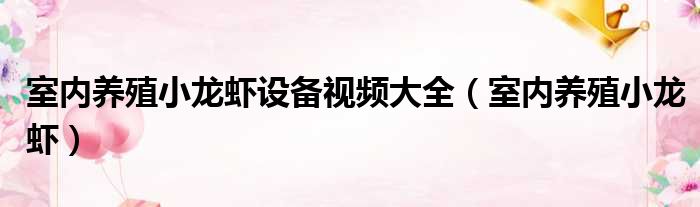 室内养殖小龙虾设备视频大全(室内养殖小龙虾)