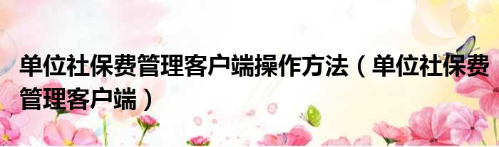 导读 大家好,今天小六子来为大家解答以下的问题,关于单位社保费管理客户端操作方法,单位社保费管理客户端这个很多人还不知道,现在让我们一起