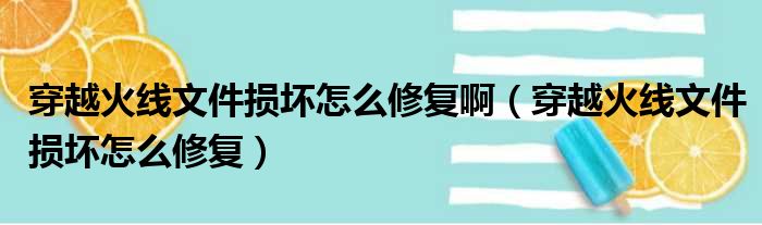 穿越火线文件损坏怎么修复啊(穿越火线文件损坏怎么修复)