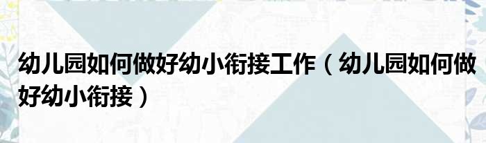 幼儿园如何做好幼小衔接工作(幼儿园如何做好幼小衔接)