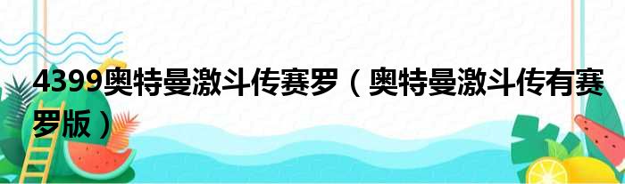 导读 大家好,今天小六子来为大家解答以下的问题,关于4399奥特曼激斗传赛罗,奥特曼激斗传有赛罗版这个很多人还不知道,现在让我们一起来看看吧