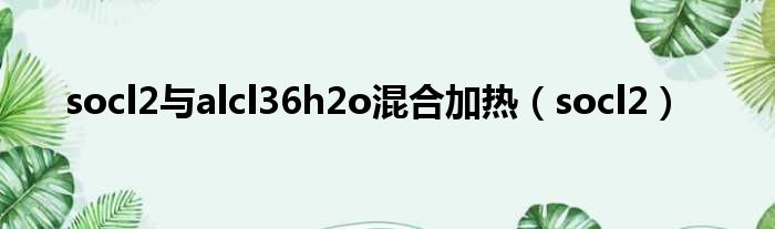 导读 大家好,今天小六子来为大家解答以下的问题,关于socl2与alcl36h2o混合加热,socl2这个很多人还不知道,现在让我们一起来看看吧!1、氯化亚
