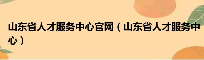 山东省人才服务中心官网(山东省人才服务中心)
