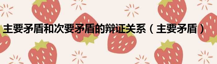 导读 大家好,今天小六子来为大家解答以下的问题,关于主要矛盾和次要矛盾的辩证关系,主要矛盾这个很多人还不知道,现在让我们一起来看看吧!1、