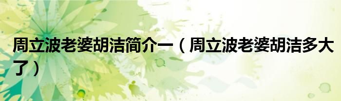 大家好,今天小六子来为大家解答以下的问题,关于周立波老婆胡洁简介一,周立波老婆胡洁多大了这个很多人还不知道,现在让我们一起来看看吧!
