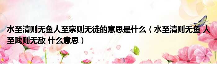 水至清则无鱼人至察则无徒的意思是什么(水至清则无鱼 人至贱则无敌 什么意思)