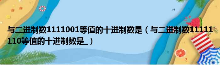 导读 大家好,今天小六子来为大家解答以下的问题,关于与二进制数1111001等值的十进制数是,与二进制数11111110等值的十进制数是_这个很多人还不
