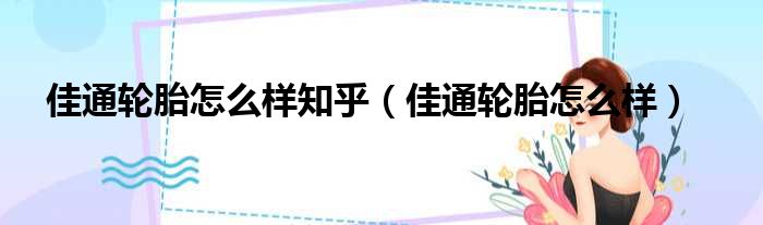 佳通轮胎怎么样知乎(佳通轮胎怎么样)
