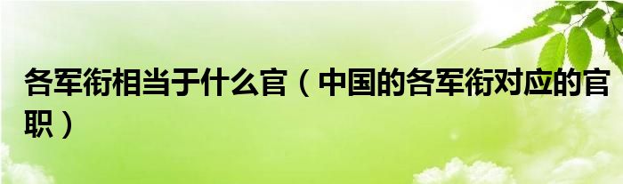 导读 大家好,今天小六子来为大家解答以下的问题,关于各军衔相当于什么官,中国的各军衔对应的官职这个很多人还不知道,现在让我们一起来看看吧