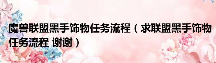 魔兽联盟黑手饰物任务流程(求联盟黑手饰物任务流程 谢谢)