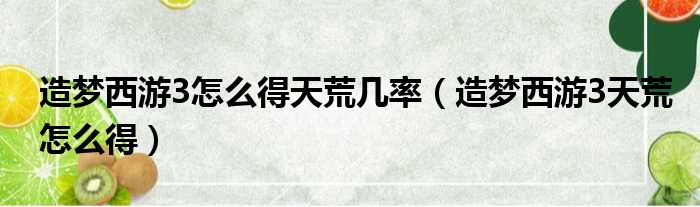 造梦西游3怎么得天荒几率(造梦西游3天荒怎么得)