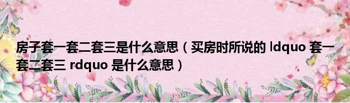 房子套一套二套三是什么意思(买房时所说的 ldquo 套一套二套三 rdquo 是什么意思)