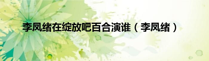 导读 大家好,今天小六子来为大家解答以下的问题,关于李凤绪在绽放吧百合演谁,李凤绪这个很多人还不知道,现在让我们一起来看看吧!1、没有~~~~