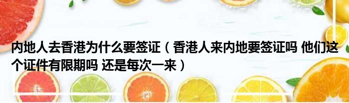 导读 大家好,今天小六子来为大家解答以下的问题,关于内地人去香港为什么要签证,香港人来内地要签证吗 他们这个证件有限期吗 还是每次一来这
