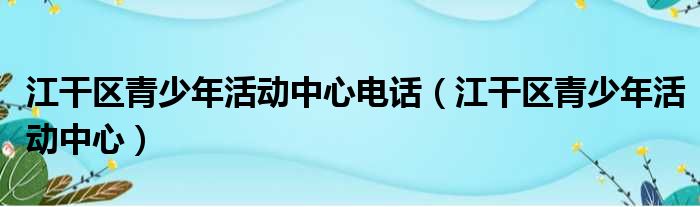 江干区青少年活动中心电话(江干区青少年活动中心)