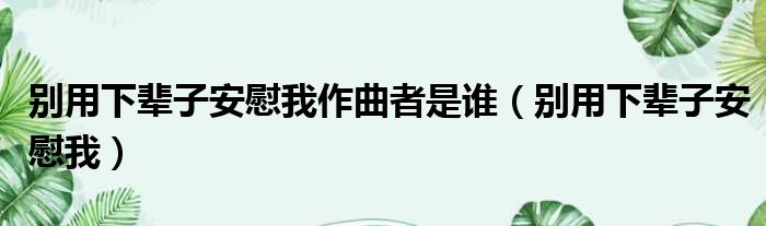 别用下辈子安慰我作曲者是谁(别用下辈子安慰我)