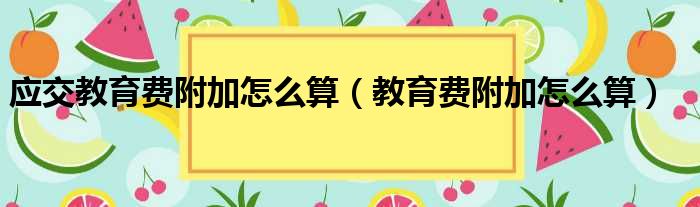 导读 大家好,今天小六子来为大家解答以下的问题,关于应交教育费附加怎么算,教育费附加怎么算这个很多人还不知道,现在让我们一起来看看吧!1、