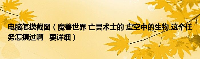 导读 大家好,今天小六子来为大家解答以下的问题,关于电脑怎摸截图,魔兽世界 亡灵术士的 虚空中的生物 这个任务怎摸过啊 要详细这个很