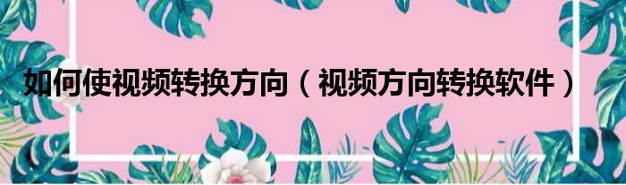如何使视频转换方向(视频方向转换软件)