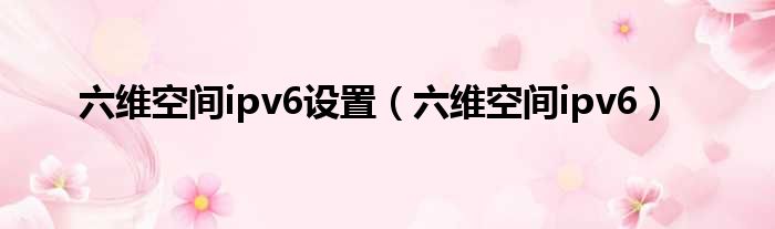 大家好,今天小六子来为大家解答以下的问题,关于六维空间ipv6设置,六维空间ipv6这个很多人还不知道,现在让我们一起来看看吧!