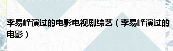导读 大家好,今天小六子来为大家解答以下的问题,关于李易峰演过的电影电视剧综艺,李易峰演过的电影这个很多人还不知道,现在让我们一起来看看