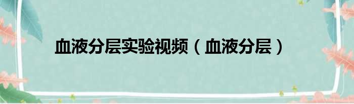 导读 大家好,今天小六子来为大家解答以下的问题,关于血液分层实验视频,血液分层这个很多人还不知道,现在让我们一起来看看吧!1、用离心机太久