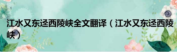 导读 大家好,今天小六子来为大家解答以下的问题,关于江水又东迳西陵峡全文翻译,江水又东迳西陵峡这个很多人还不知道,现在让我们一起来看看吧