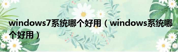 windows7系统哪个好用(windows系统哪个好用)