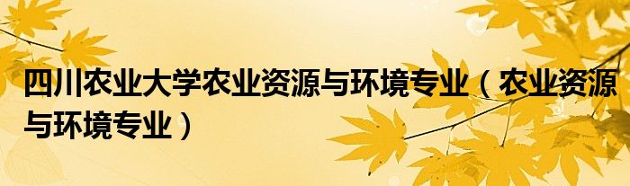 四川农业大学农业资源与环境专业(农业资源与环境专业)