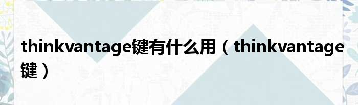 thinkvantage键有什么用(thinkvantage键)