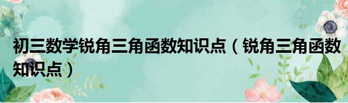 导读 大家好,今天小六子来为大家解答以下的问题,关于初三数学锐角三角函数知识点,锐角三角函数知识点这个很多人还不知道,现在让我们一起来看